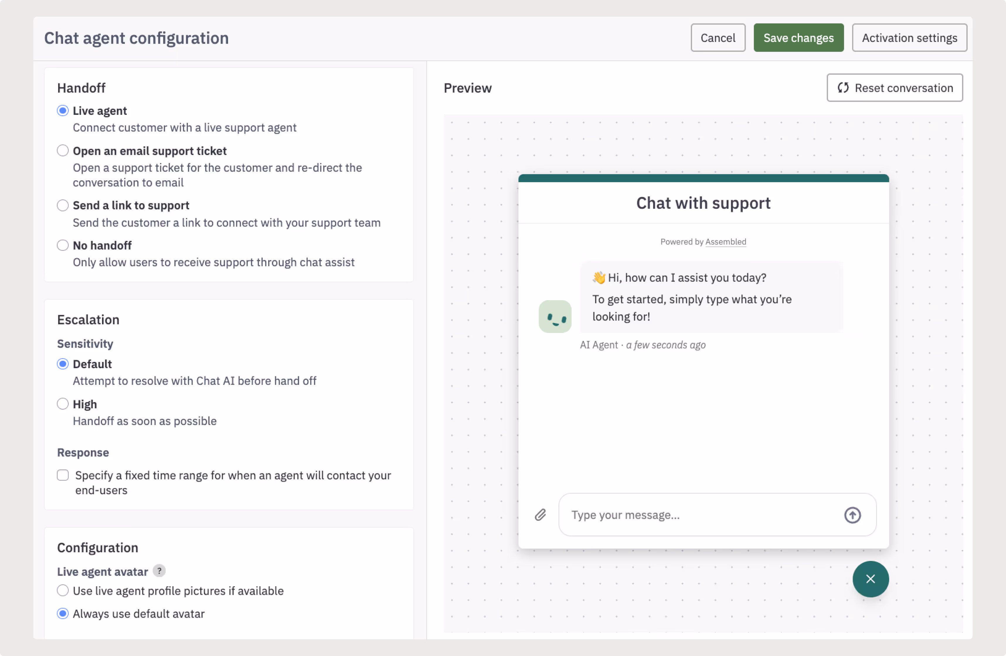 Assembled’s AI chat agent doesn’t just respond quickly — it responds the way your brand would. Teams can customize tone, style, and escalation workflows to make sure every AI-driven conversation aligns with company messaging.